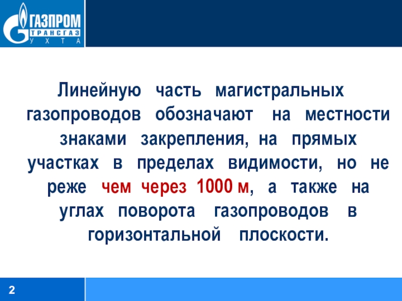Слайд 2Линейную часть магистральных газопроводов обозначают на