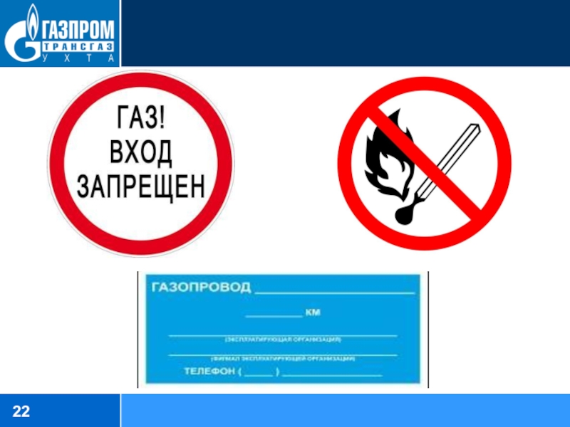 Слайд 23В местах выявленных утечек газа устанавливают знаки: «Осторожно! Газ»,
