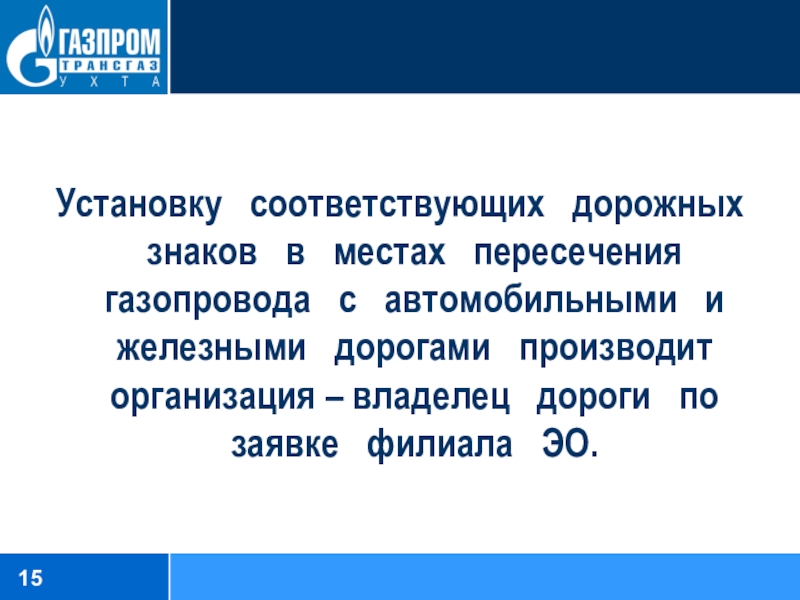 по газопроводу, и устанавливают знаки «Осторожно! Газопровод»