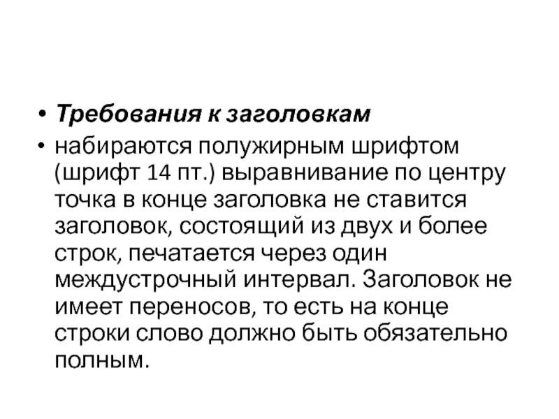 двух и более строк, печатается через один междустрочный интервал. Заголовок не имеет переносов, то есть на конце строки слово должно быть обязательно полным.