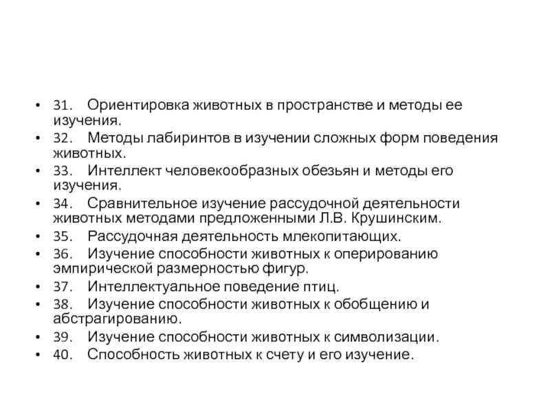 34. Сравнительное изучение рассудочной деятельности животных методами предложенными Л.В. Крушинским.