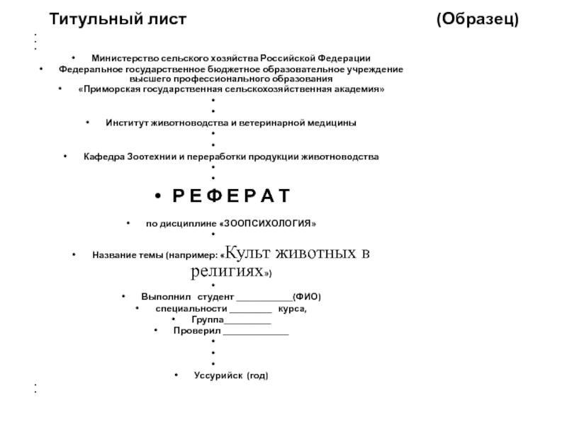 Слайд 1Оформление РЕФЕРАТА по «Зоопсихологии»