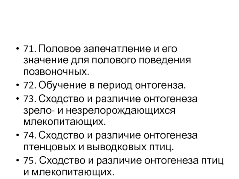 Слайд 1771. Половое запечатление и его значение для полового поведения позвоночных.