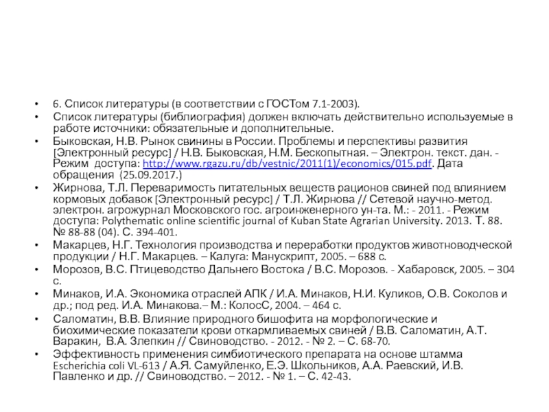 Слайд 36. Список литературы (в соответствии с ГОСТом 7.1-2003).