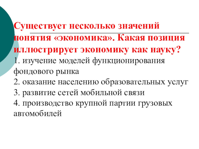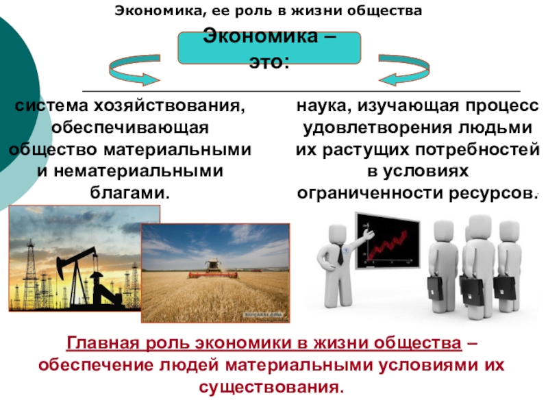 Главная роль экономики в жизни общества – обеспечение людей материальными условиями их существования.
