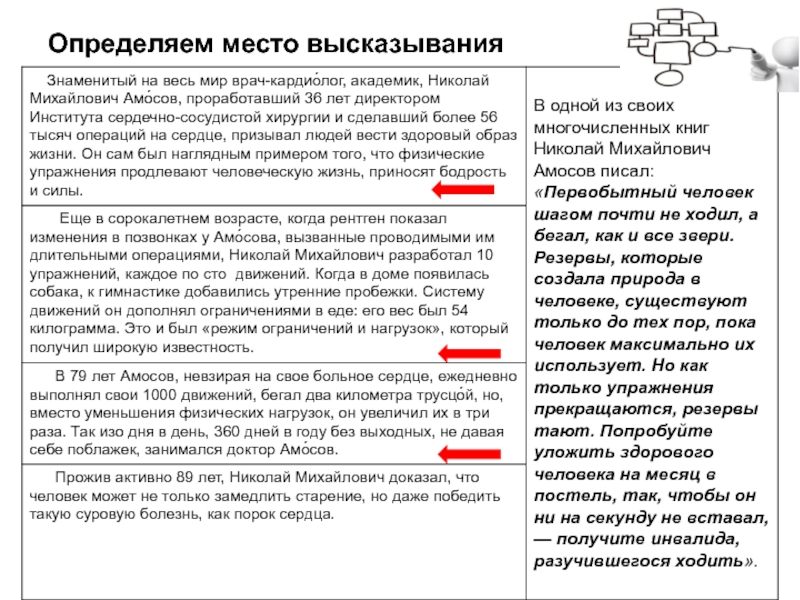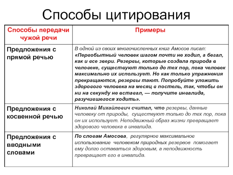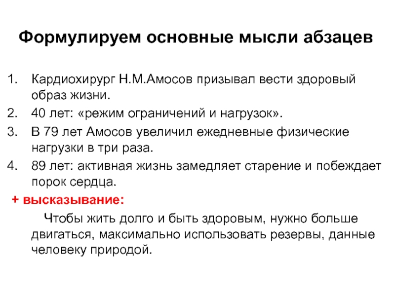 Подумайте, где лучше использовать слова Н.М.Амосова в пересказе. Вы можете использовать любые способы цитирования.