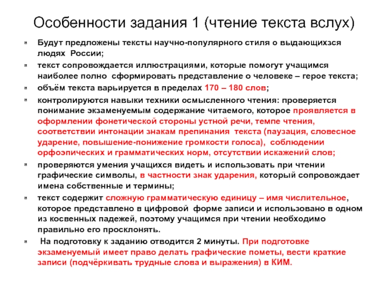 Слайд 6Особенности задания 1 (чтение текста вслух)