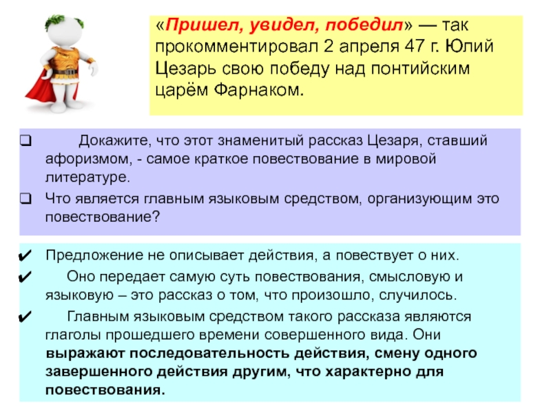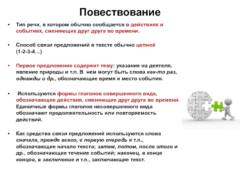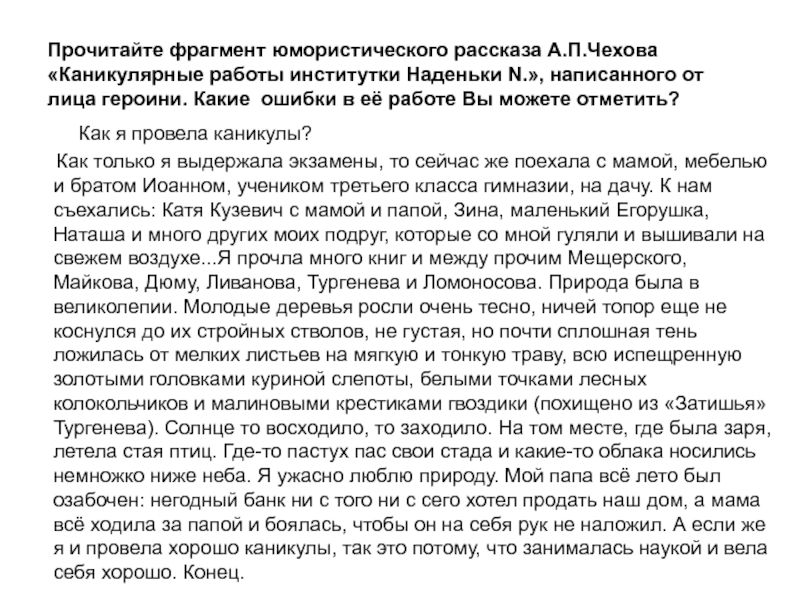 Пересказ и включённое в него задание должны составлять цельный текст.