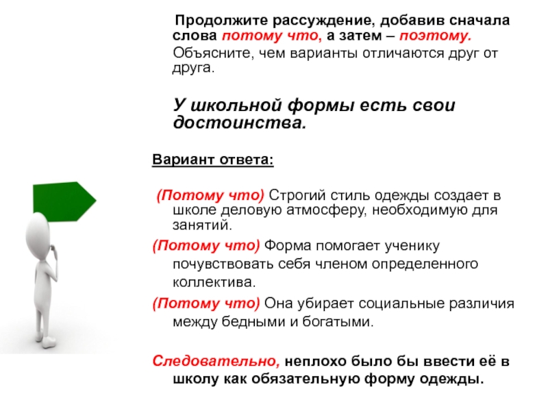 Слайд 76 Продолжите рассуждение, добавив сначала слова потому что,