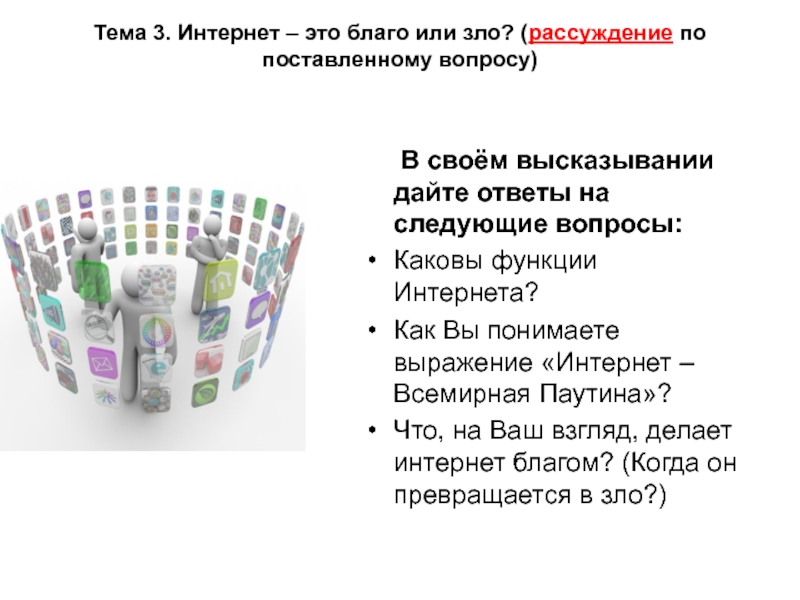 Слайд 77Тема 3. Интернет – это благо или зло? (рассуждение по