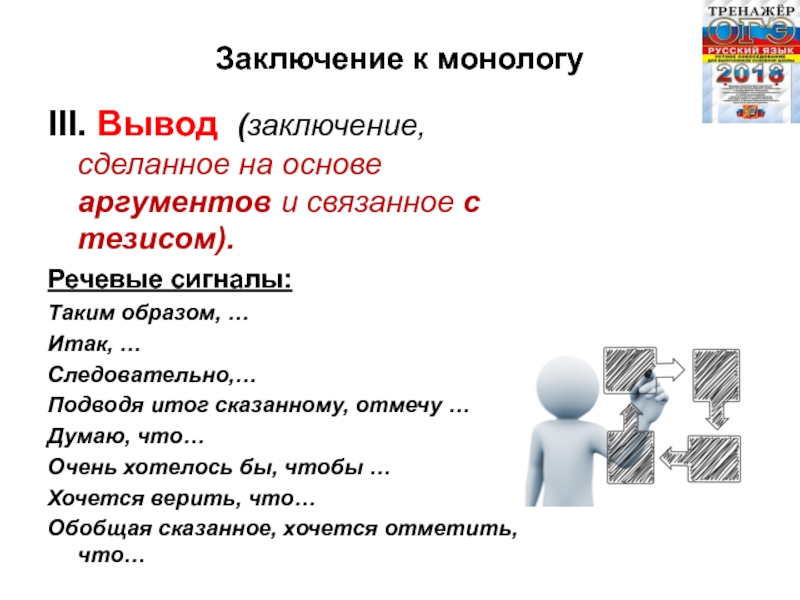 Экзаменуемый во время пересказа имеет право зачитать высказывание.
