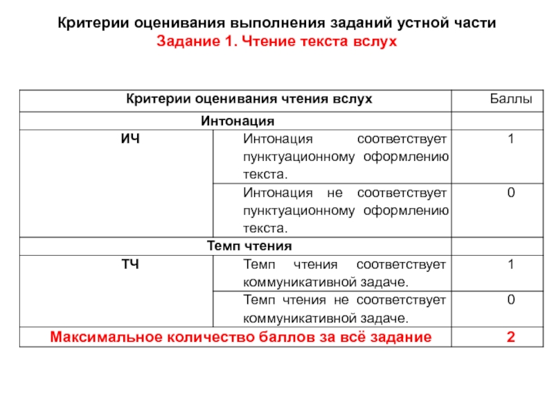 Слайд 8Критерии оценивания выполнения заданий устной части