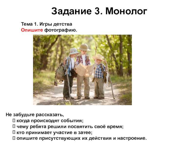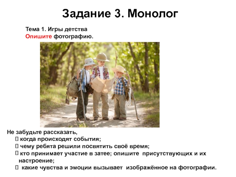 Вам предстоит выбрать одну тему для монолога и диалога.