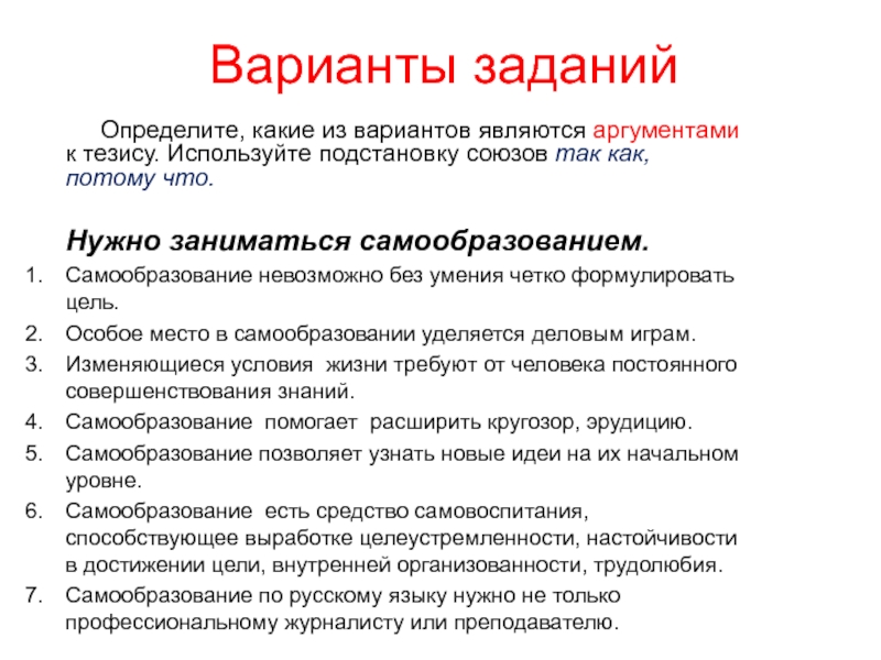 Слайд 81 Продолжите рассуждение, добавив сначала слова потому что,