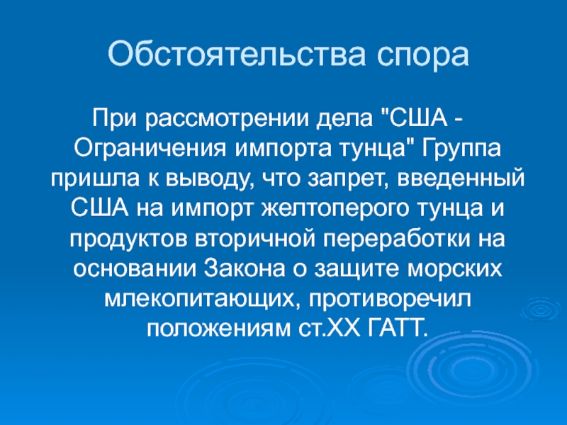 желтоперого тунца и продуктов вторичной переработки на основании Закона о защите морских млекопитающих, противоречил положениям ст.ХХ ГАТТ.