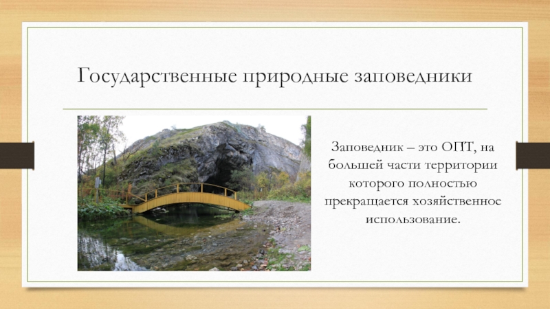 Государственные природные заповедникиЗаповедник – это ОПТ, на большей части территории которого полностью прекращается хозяйственное использование.