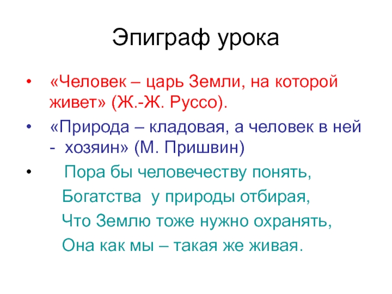 «Человек – царь Земли, на которой живет» (Ж.-Ж. Руссо).