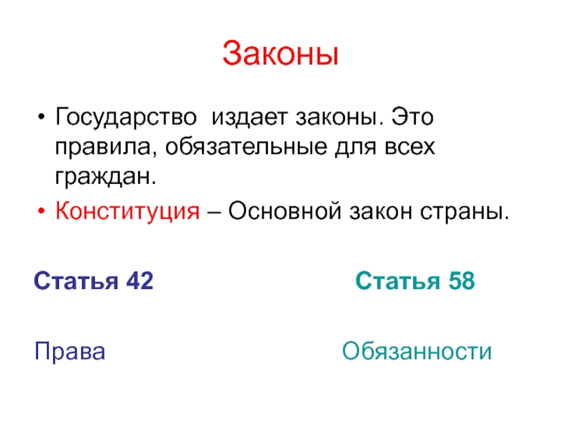 Государство издает законы. Это правила, обязательные для всех граждан.