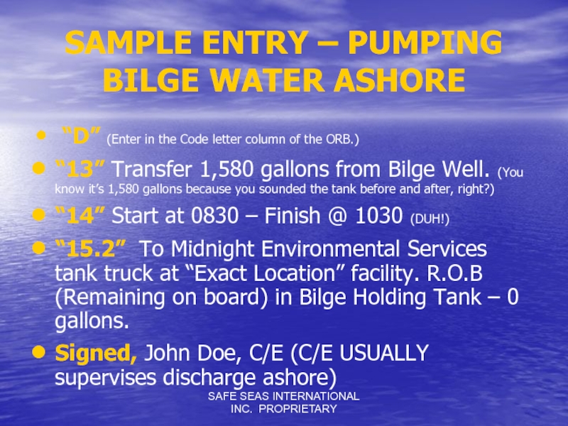 SAMPLE ENTRY – PUMPING BILGE WATER