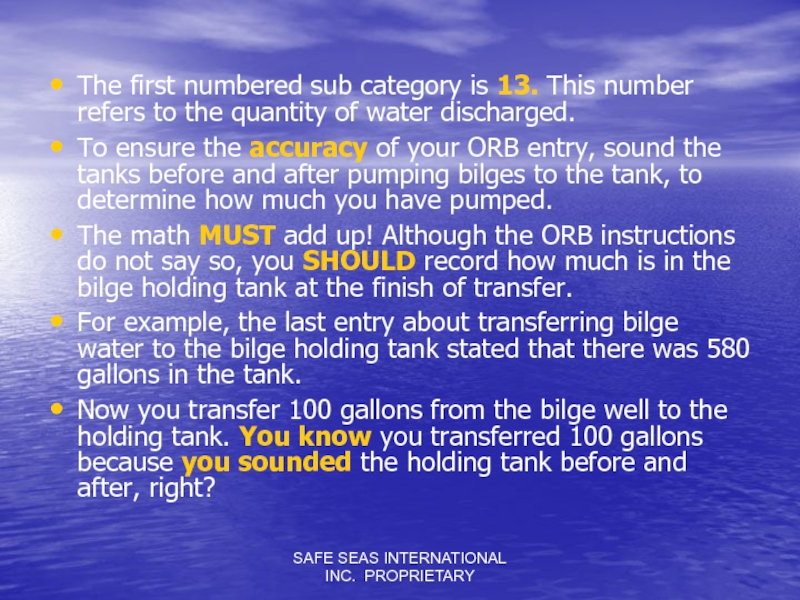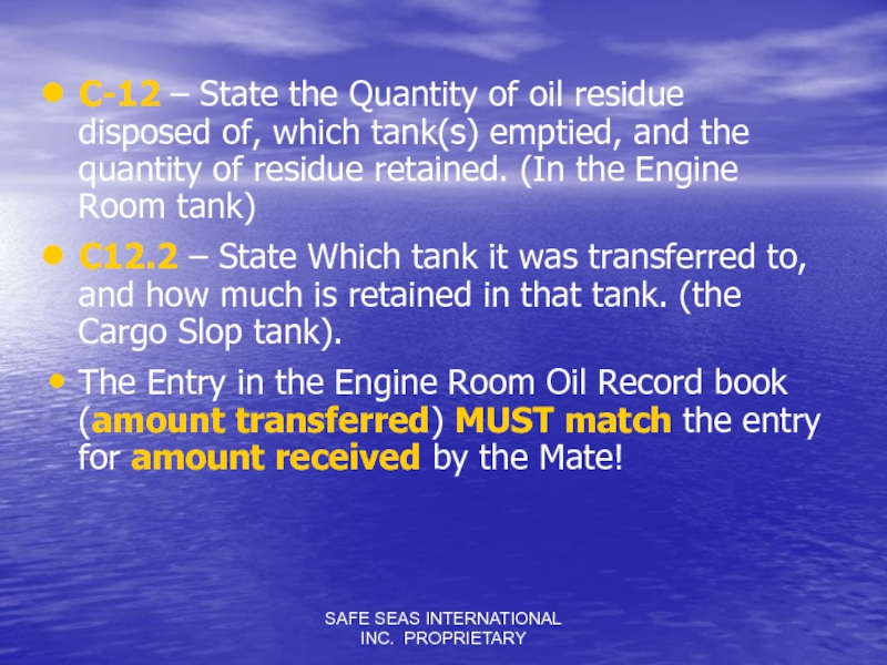 Слайд 13SAFE SEAS INTERNATIONAL INC. PROPRIETARY