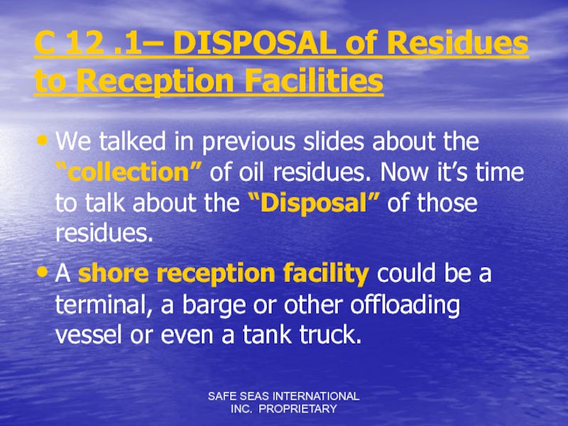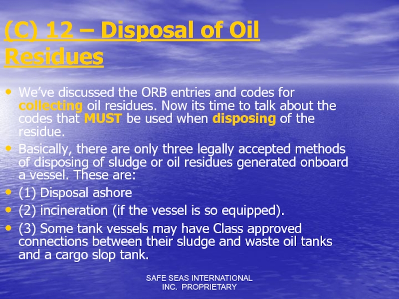 Слайд 12SAFE SEAS INTERNATIONAL INC. PROPRIETARY