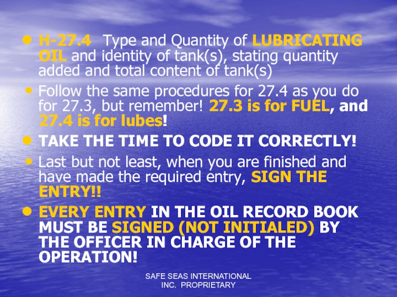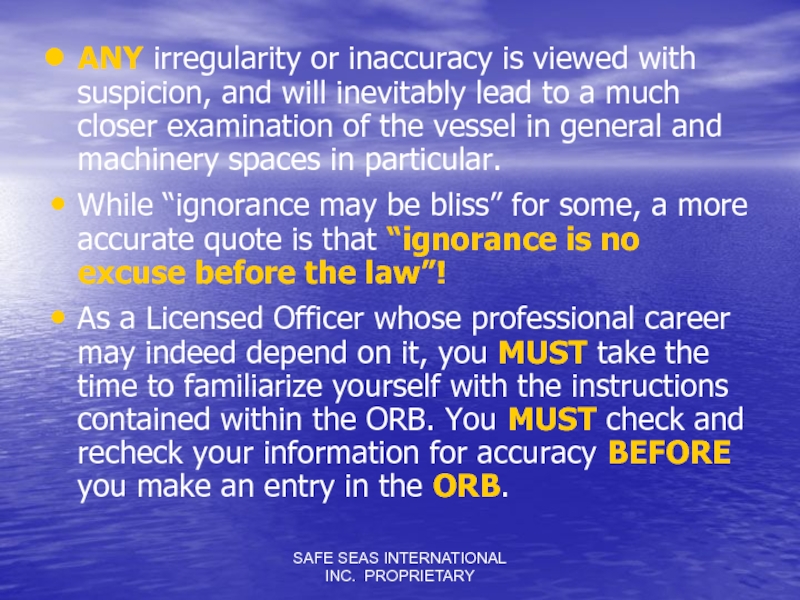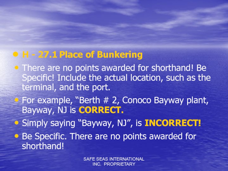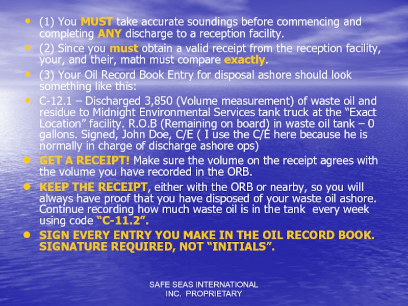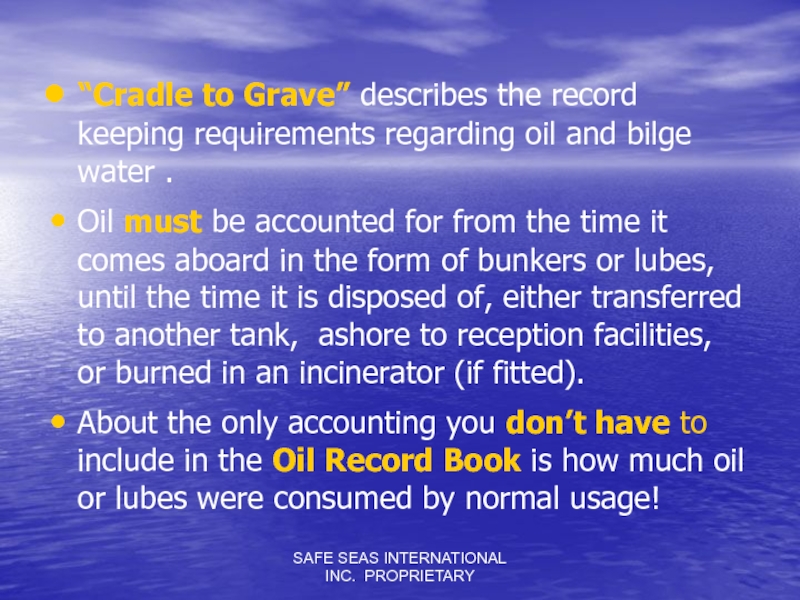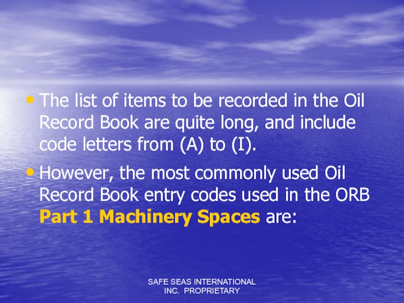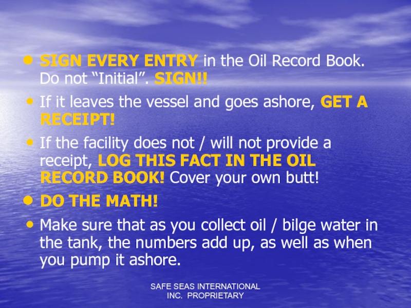 Слайд 45SAFE SEAS INTERNATIONAL INC. PROPRIETARY