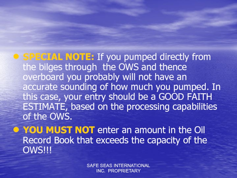 YOU MUST NOT enter an amount in the Oil Record Book that exceeds the capacity of the OWS!!!