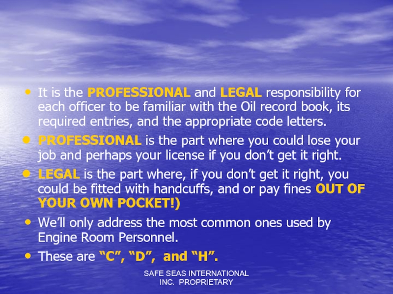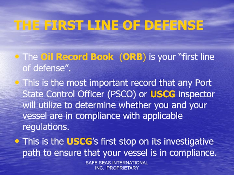 Слайд 1SAFE SEAS INTERNATIONAL INC. PROPRIETARY