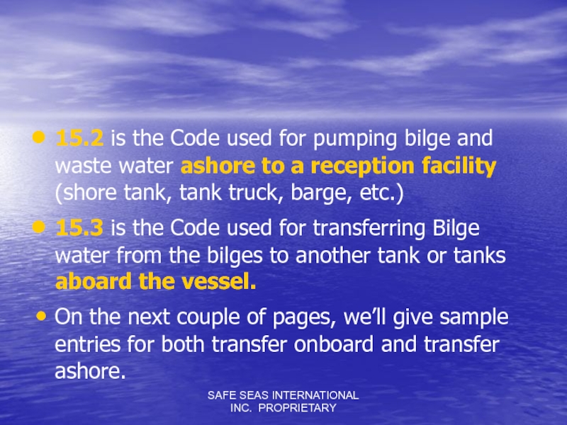 Слайд 15SAFE SEAS INTERNATIONAL INC. PROPRIETARY