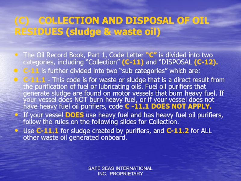 Слайд 11SAFE SEAS INTERNATIONAL INC. PROPRIETARY