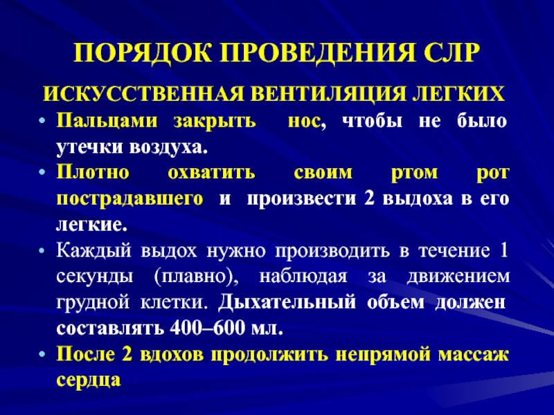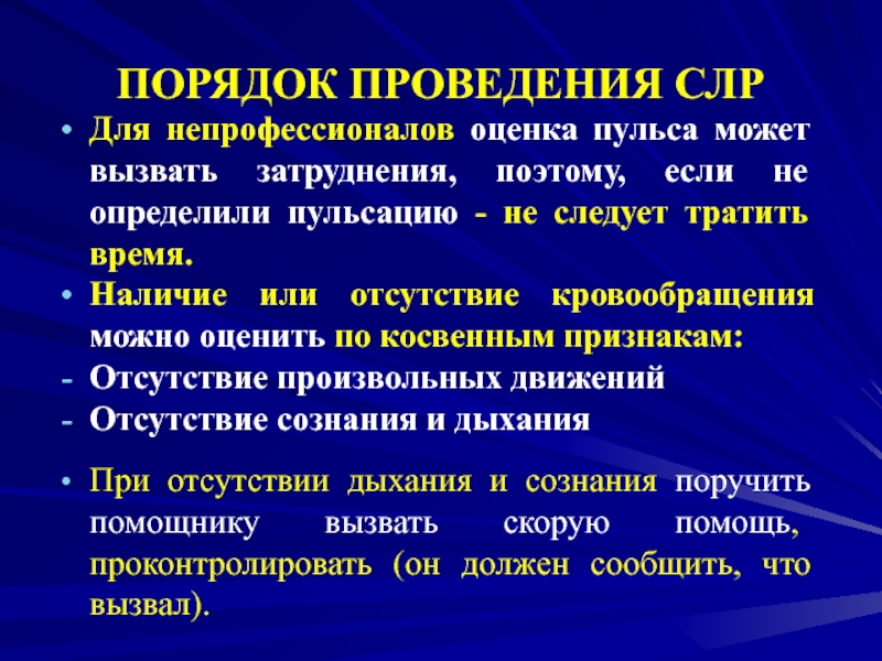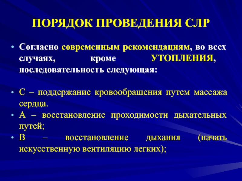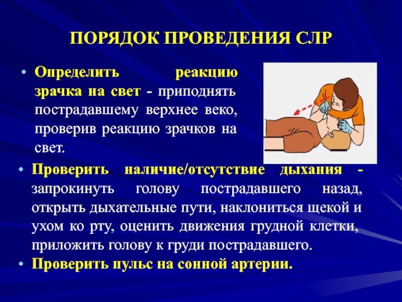 Слайд 7ПОРЯДОК ПРОВЕДЕНИЯ СЛР