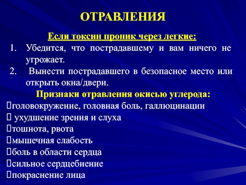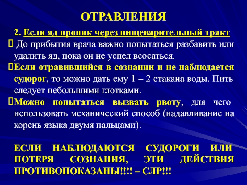 ПЕРВАЯ ПОМОЩЬ ПРИ ОТРАВЛЕНИЯХ ЗАВИСИТ ОТ СПОСОБА ПРОНИКНОВЕНИЯ ТОКСИНА В