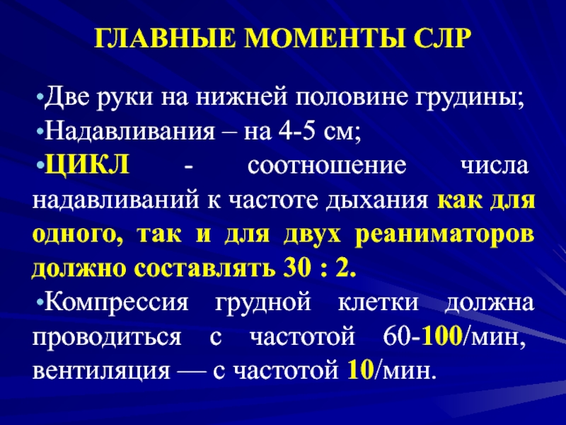 Слайд 14ГЛАВНЫЕ МОМЕНТЫ СЛР