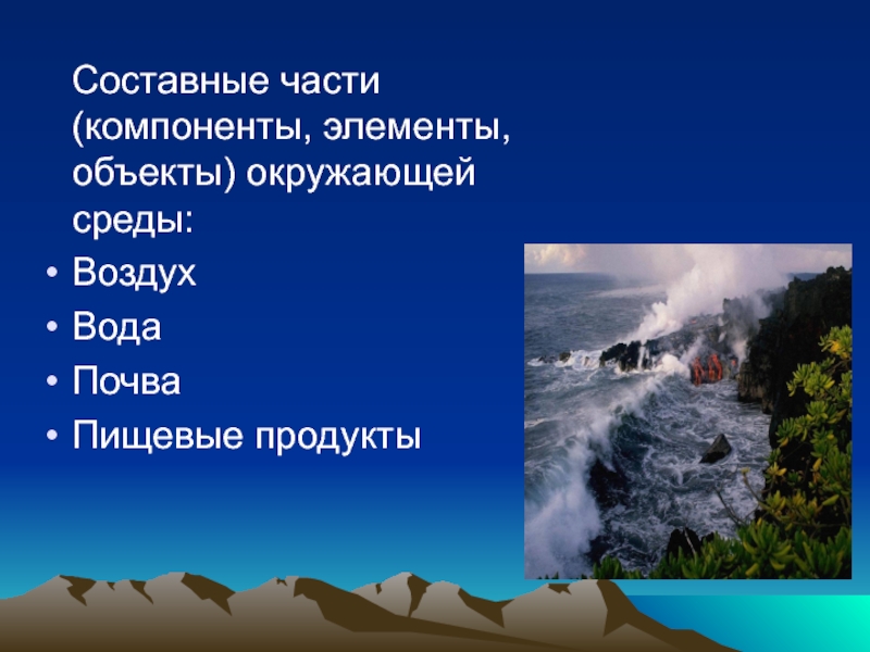 Слайд 9 Составные части (компоненты, элементы, объекты) окружающей среды: