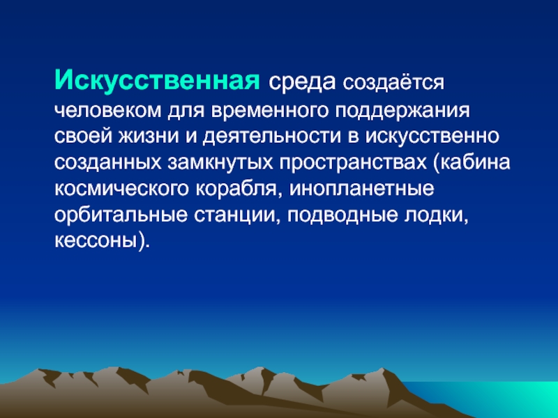 Слайд 7 Искусственная среда создаётся человеком для временного поддержания своей