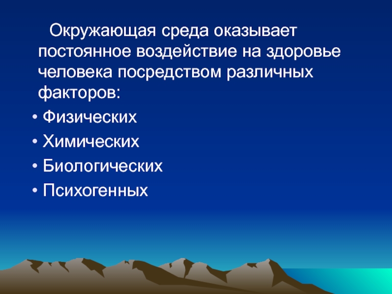Слайд 10 Окружающая среда оказывает постоянное воздействие на здоровье человека