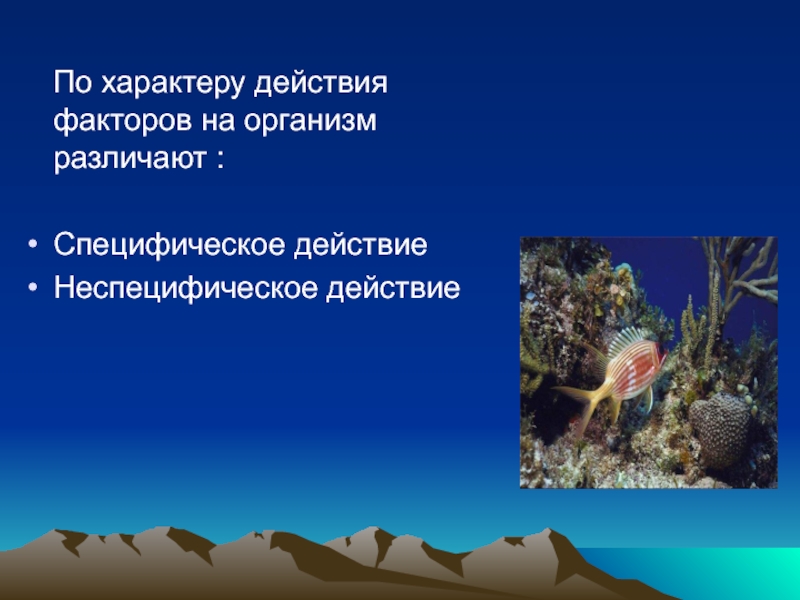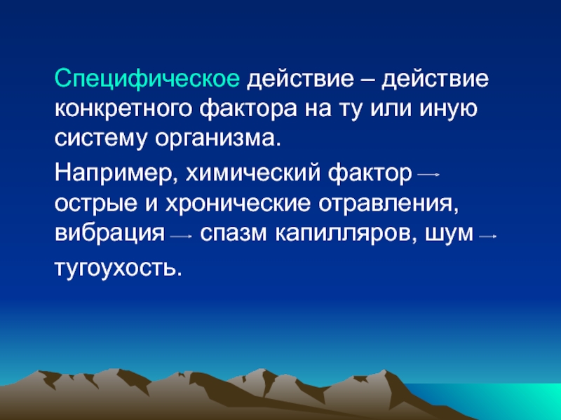 Слайд 15 Специфическое действие – действие конкретного фактора на ту