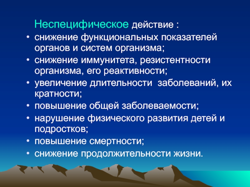 неспецифическое действие факторов ОС. Отдалённые эффекты