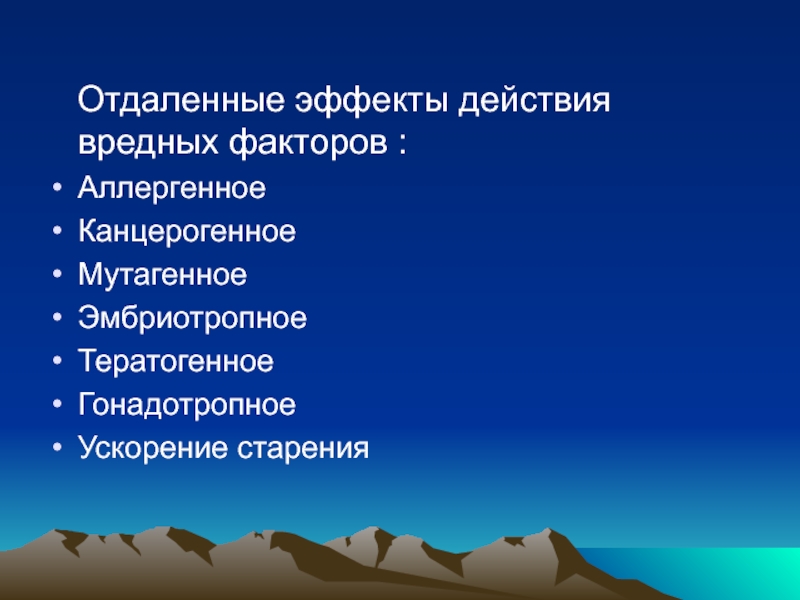 Слайд 17 Отдаленные эффекты действия вредных факторов :
