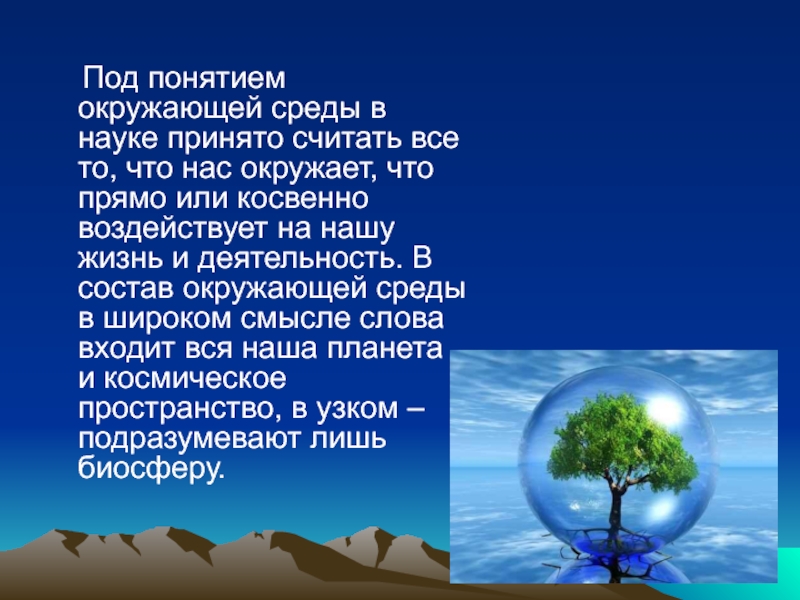 Слайд 2 Под понятием окружающей среды в науке принято считать