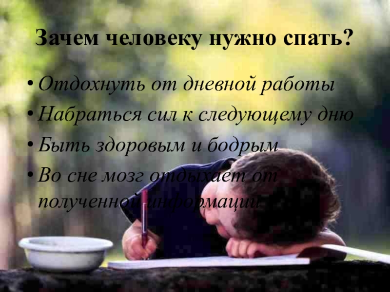 Слайд 4Зачем человеку нужно спать?