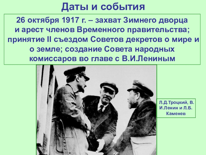 Л.Д.Троцкий, В.И.Ленин и Л.Б.Каменев
