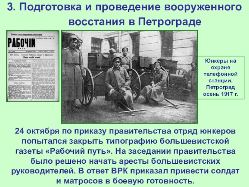 Юнкеры на охране телефонной станции. Петроград осень 1917 г.