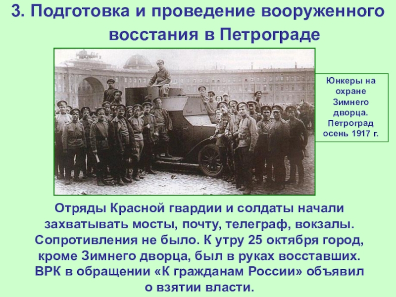 Юнкеры на охране Зимнего дворца. Петроград осень 1917 г.