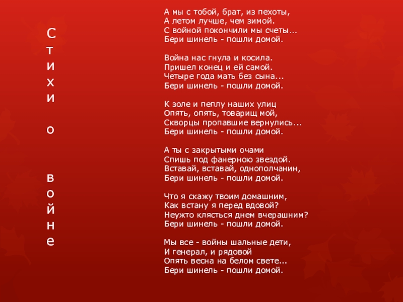 многие песни Окуджавы, оно было подвергнуто в прессе осуждению за «пацифизм», отсутствие «героического» пафоса.