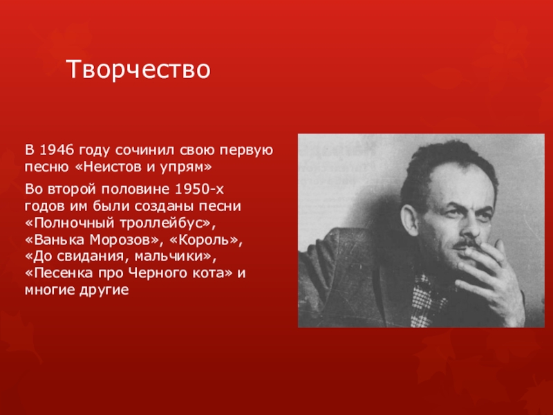 второй половине 1950-х годов им были созданы песни «Полночный троллейбус»,