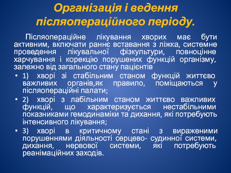 Слайд 13ПІСЛЯОПЕРАЦІЙНИЙ ПЕРІОД