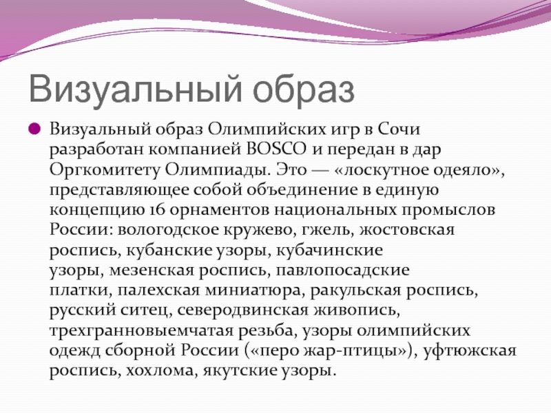 Визуальный образ Олимпийских игр в Сочи разработан компанией BOSCO и передан