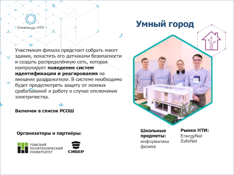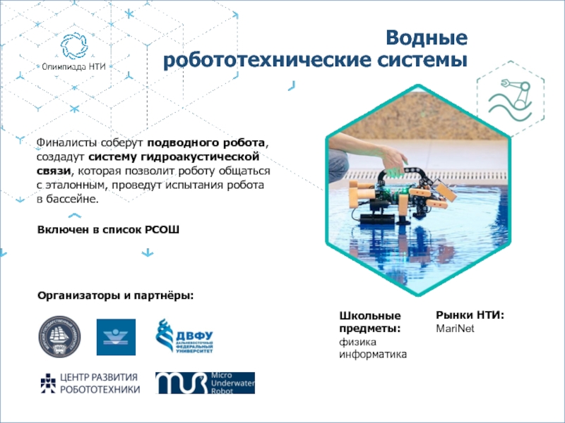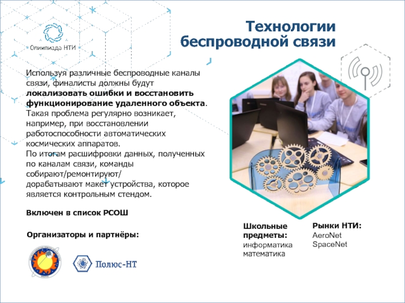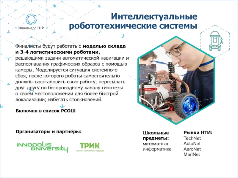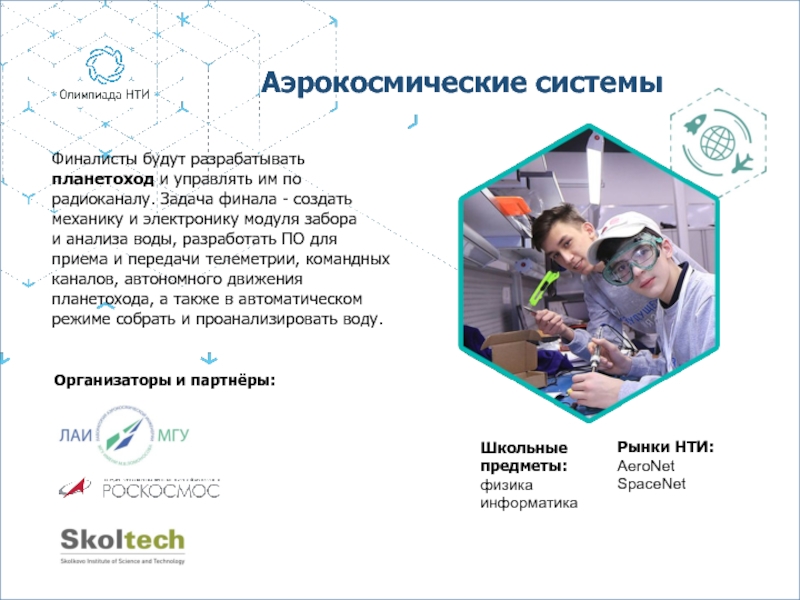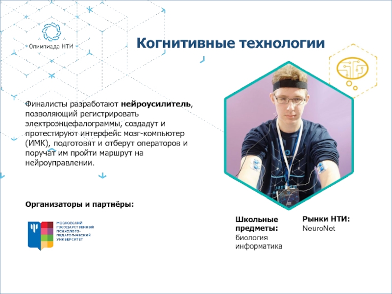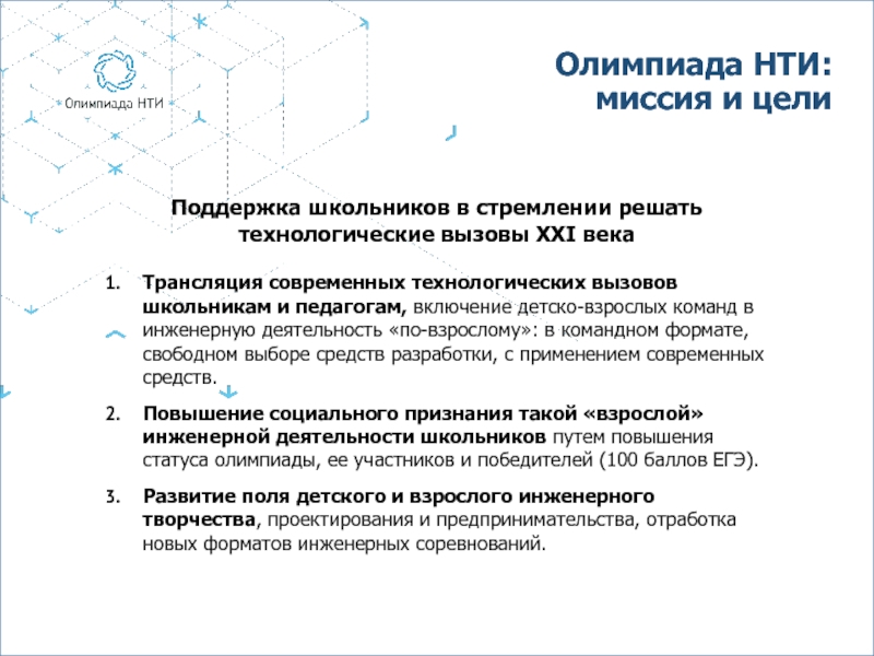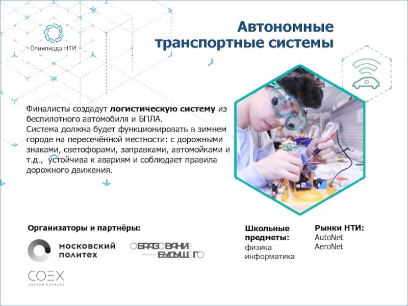 Создать систему технологических соревнований, конкурсов, олимпиад, побуждающую технологических энтузиастов к исследованиям и творчеству в сфере рынков и сквозных технологий НТИ.