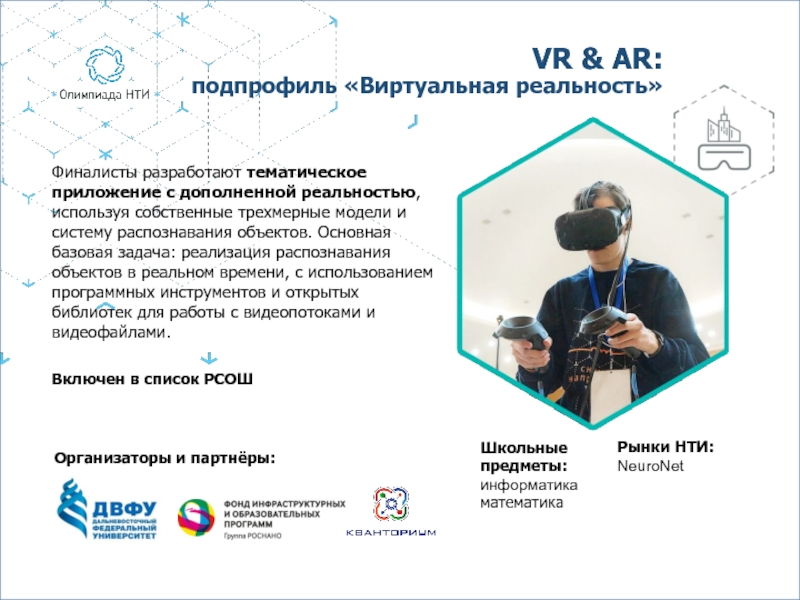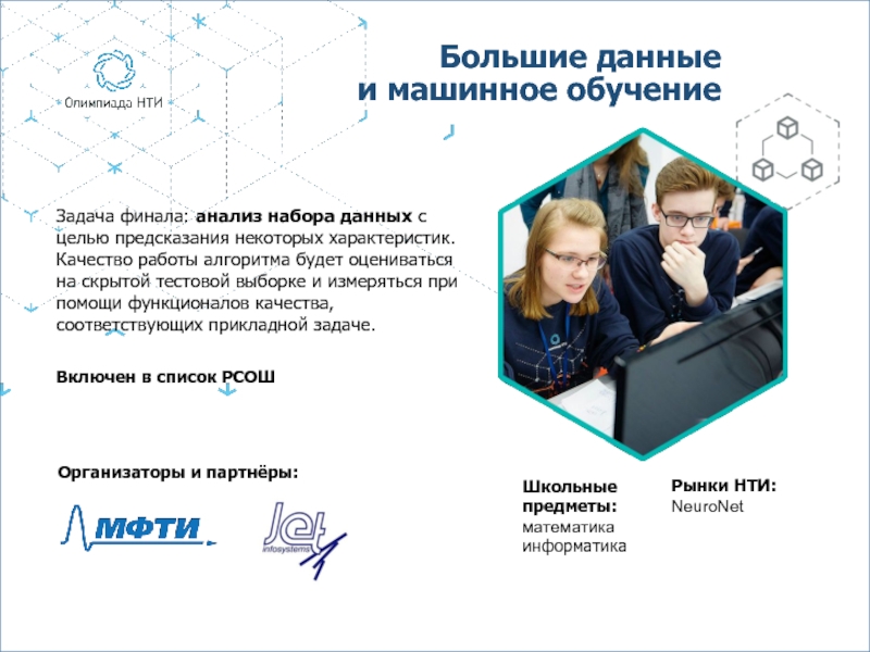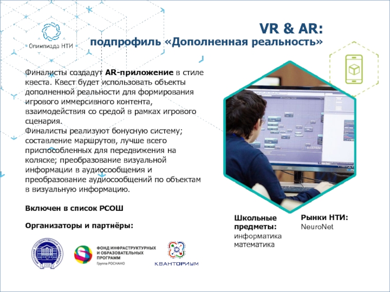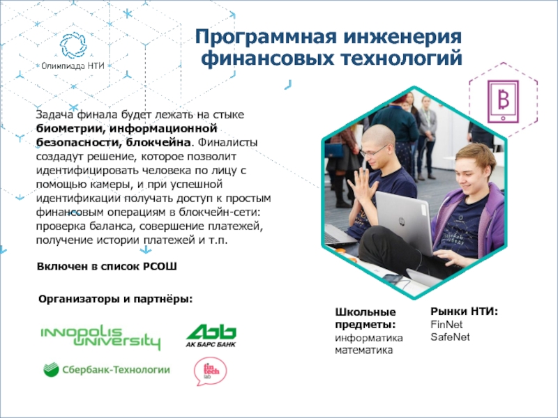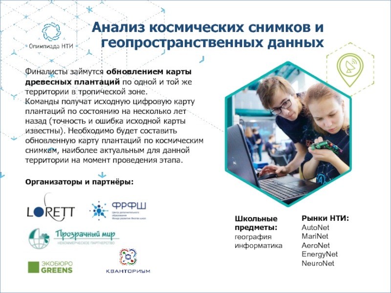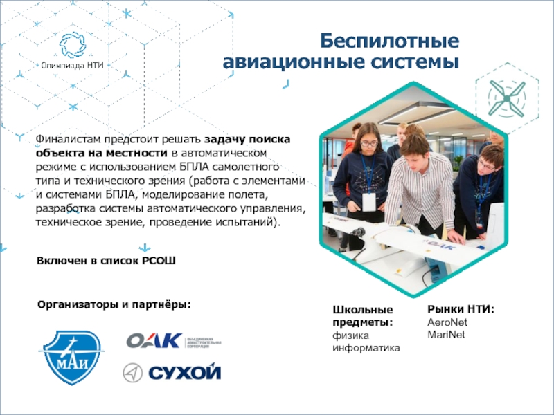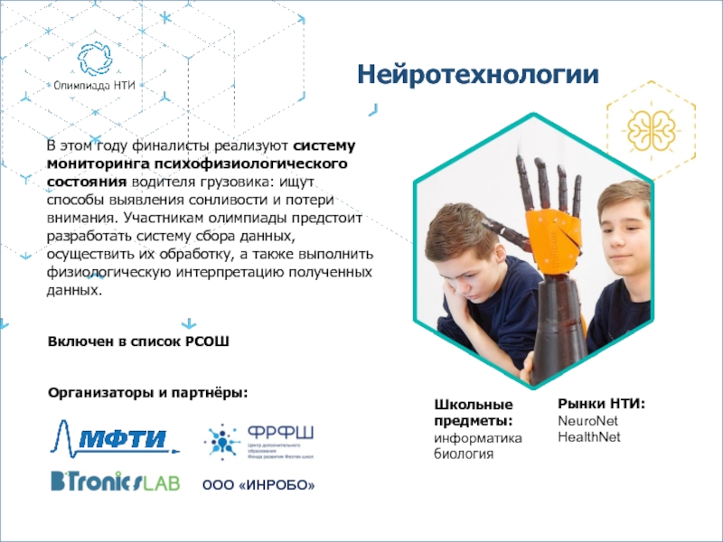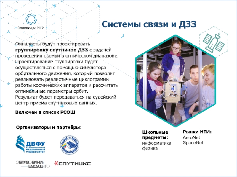 Создать систему технологических соревнований, конкурсов, олимпиад, побуждающую технологических энтузиастов к исследованиям и творчеству в сфере рынков и сквозных технологий НТИ.